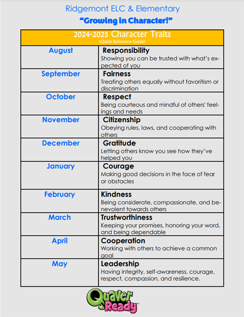 QuaverReady 2025-2026 Monthly Character Value Traits:
