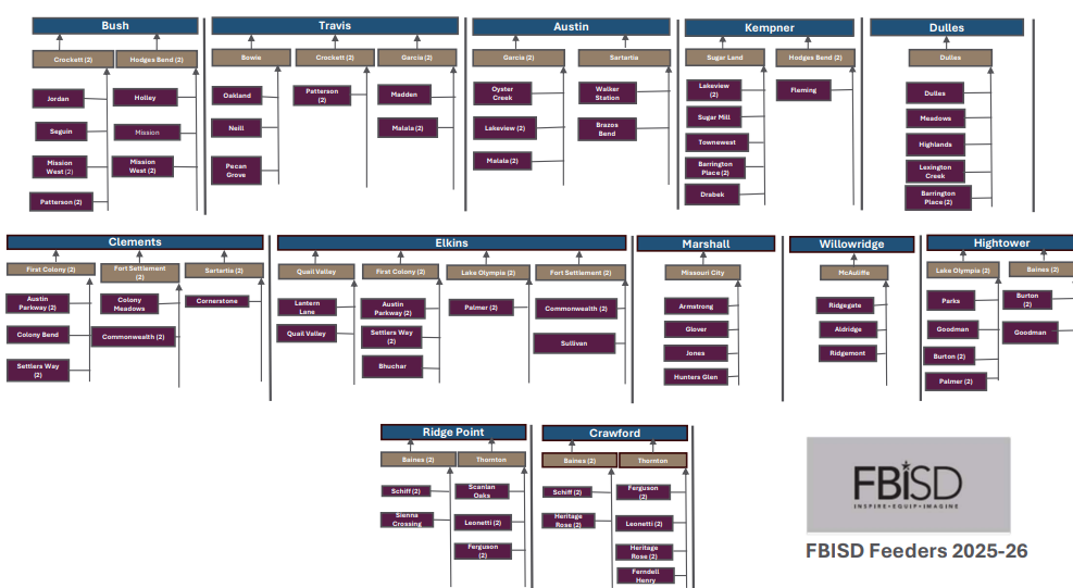FBISD feeder patterns determine the path that students follow as they graduate from one level to the next.