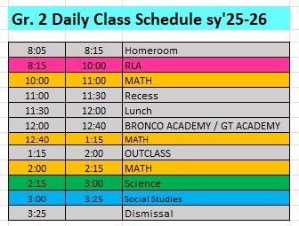 Class Schedule for sy'25-26